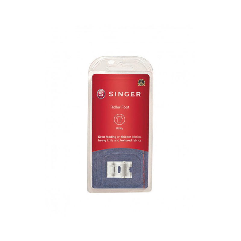 Der Rollenfuß Art.-Nr. 250027202 erleichtert das Nähen von schwierigen Materialien wie Vinyl, Leder oder Samt. Die Rollen sorgen für einen gleichmäßigen Stofftransport. Passend für viele Singer-Modelle mit niedrigem Schaft.