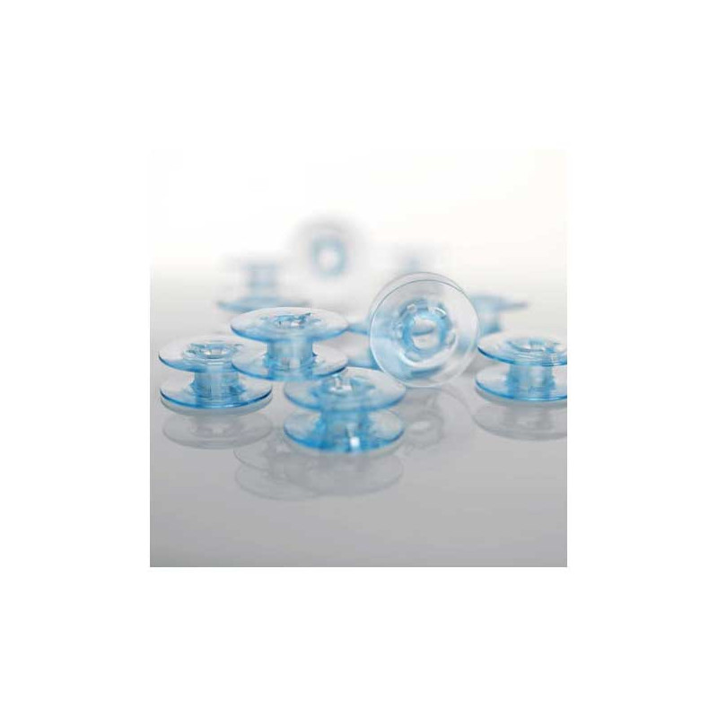 Packung mit 10 originalen blauen PFAFF-Spulen, ideal für gleichmäßige und zuverlässige Nähte.