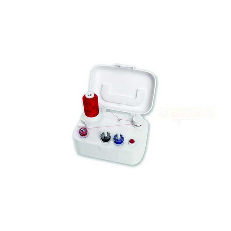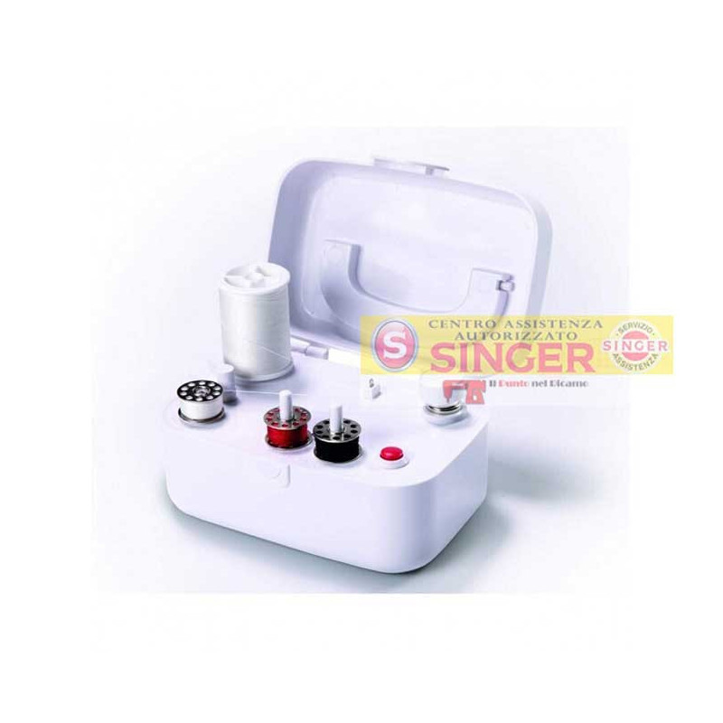 Elektrischer automatischer Spulenwickler Singer mit 10 Originalspulen gratis. Praktisch, schnell und kompatibel mit den meisten Singer Nähmaschinen.