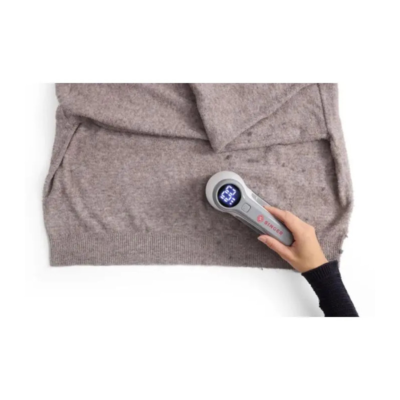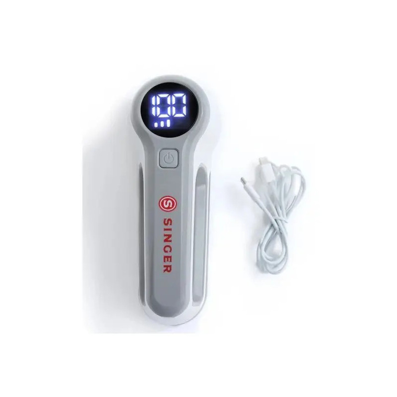 Quitapelusas Singer recargable, práctico y eficaz para eliminar pelusas y bolitas de los tejidos.