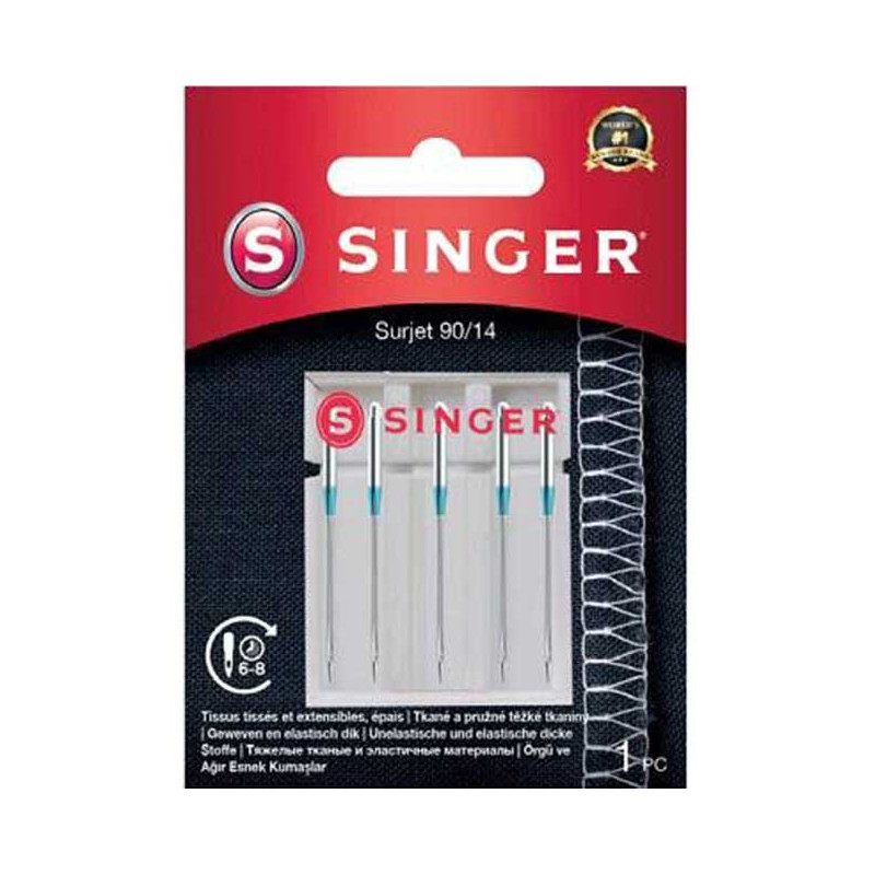 Agujas Singer originales para remalladora medida 90/14, ideales para costuras precisas en telas elásticas y medianas.