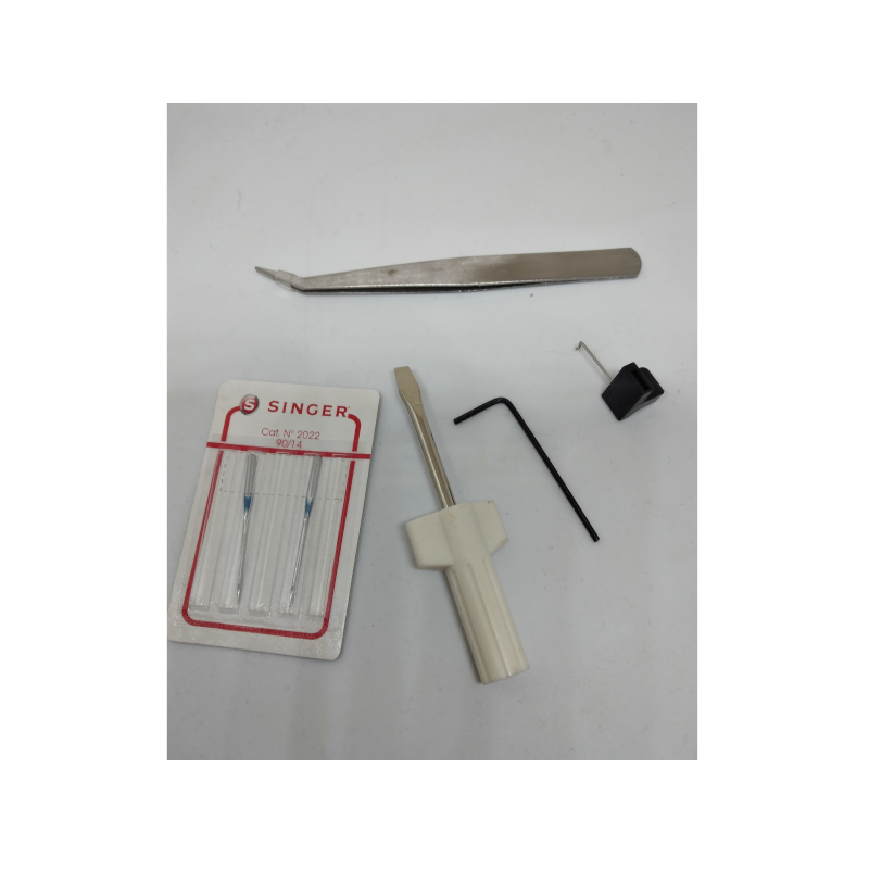 Juego de accesorios originales Singer para la remalladora S14-78, ideal para mantener la máquina eficiente y versátil.