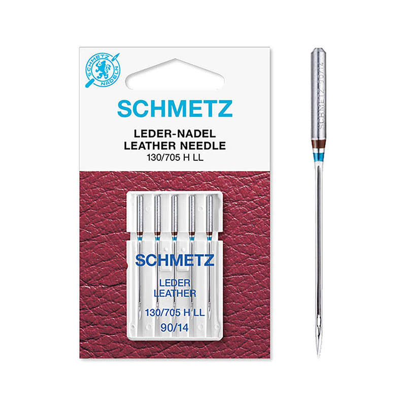 Aiguille cuir taille 90 à pointe tranchante, parfaite pour coudre cuir et simili.