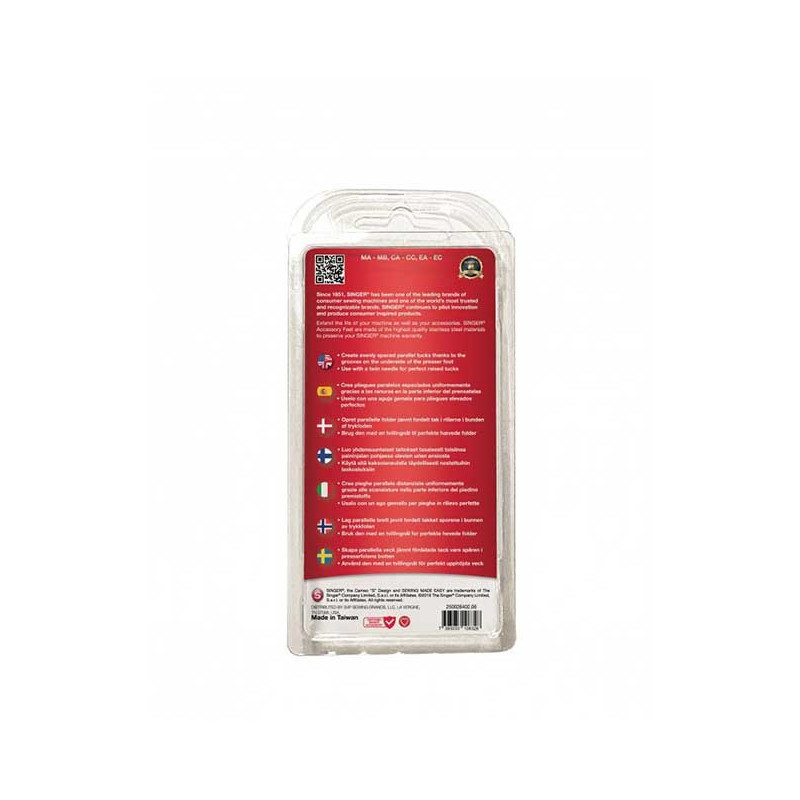 Ce pied pour nervures s'utilise facilement sur du coton ou des tissus légers. Associé à l'aiguille double, il vous permettra de créer des nervures qui apporteront une touche rétro à vos draps, oreillers, chemisiers ou vêtements d'enfants.