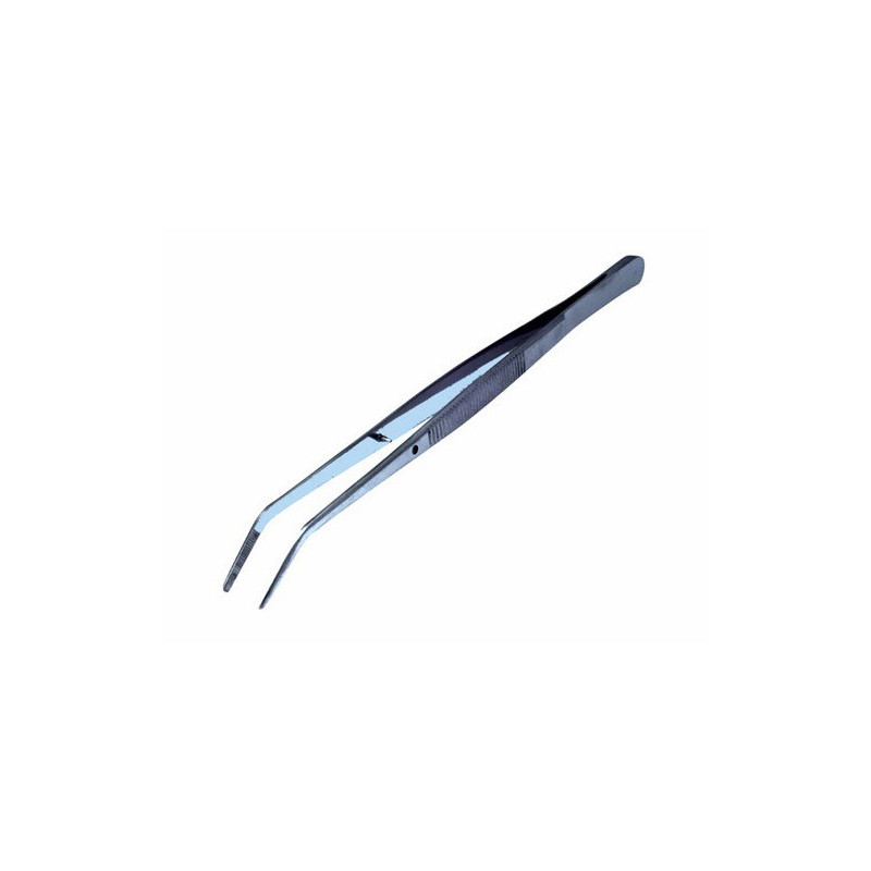 Curved tweezers designed for easy and precise threading of the overlocker.
