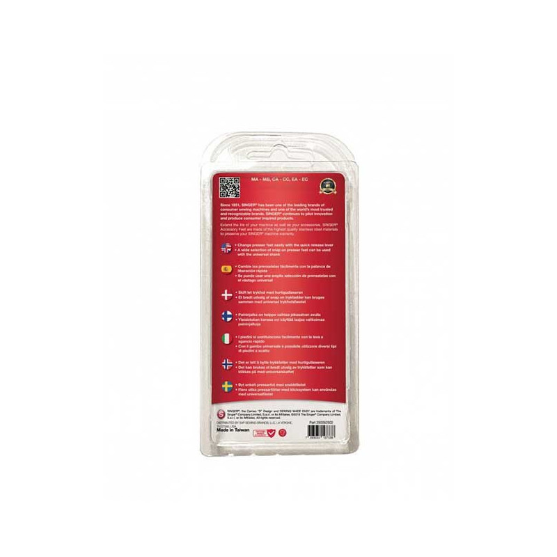 Universal blister foot shank code 250052502 compatible with various sewing machine feet.