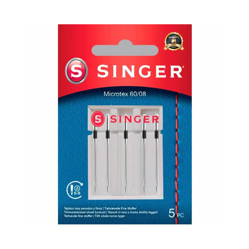 Original Singer Microtex needles 70/10, ideal for precise stitching on very thin and delicate fabrics.